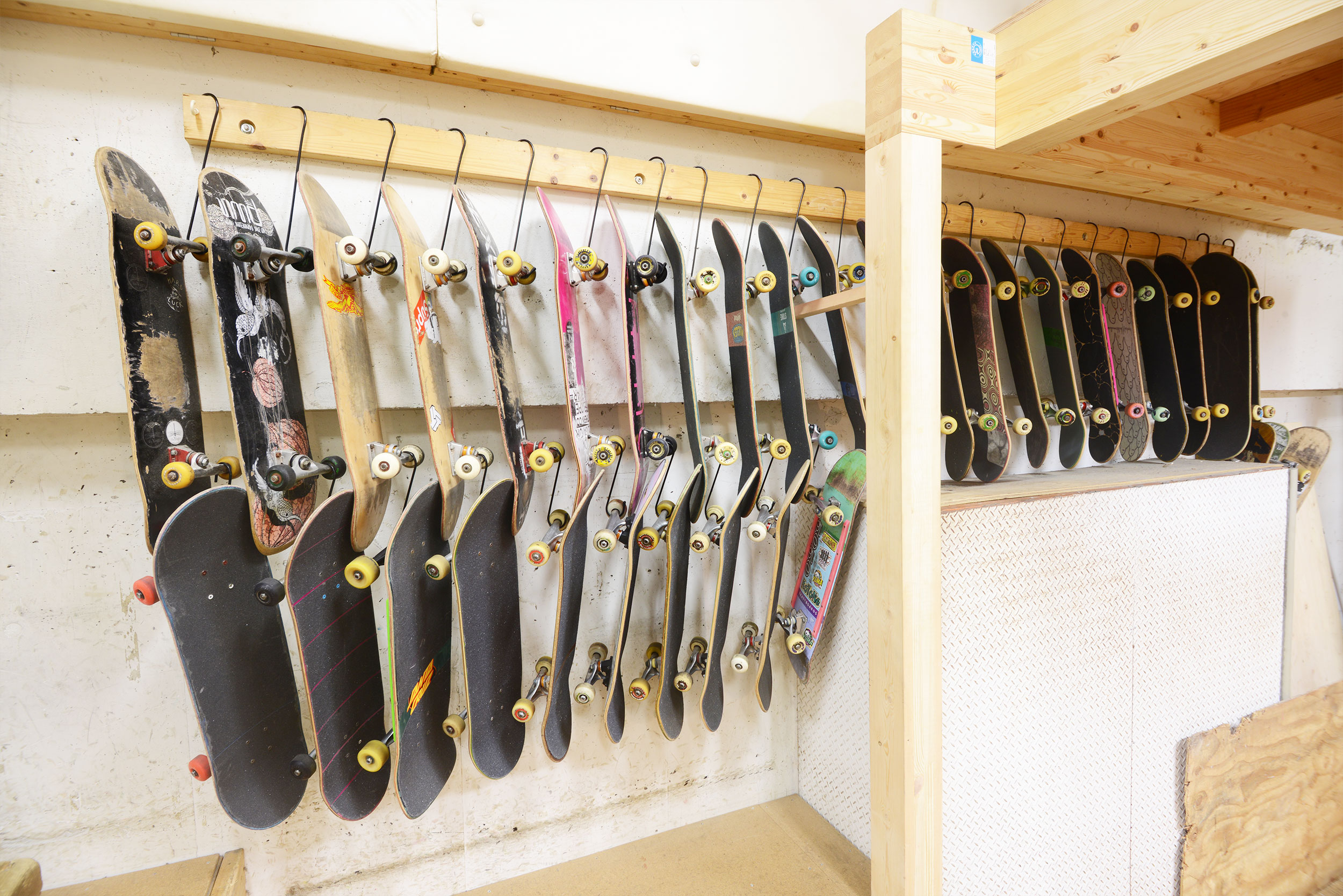 デッキの無料貸し出しもおこなっているので、手ぶらの人も是非来てみてください。練習方法や新技、スケートボードのことはなんでも聞いてください!