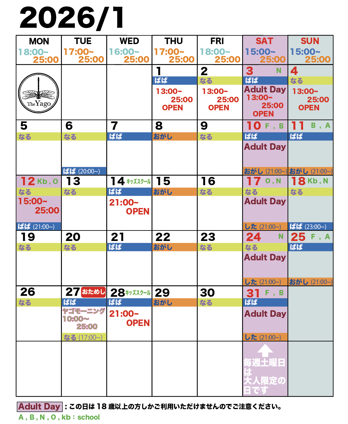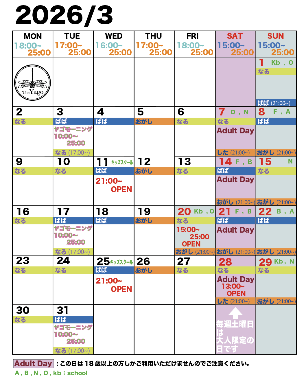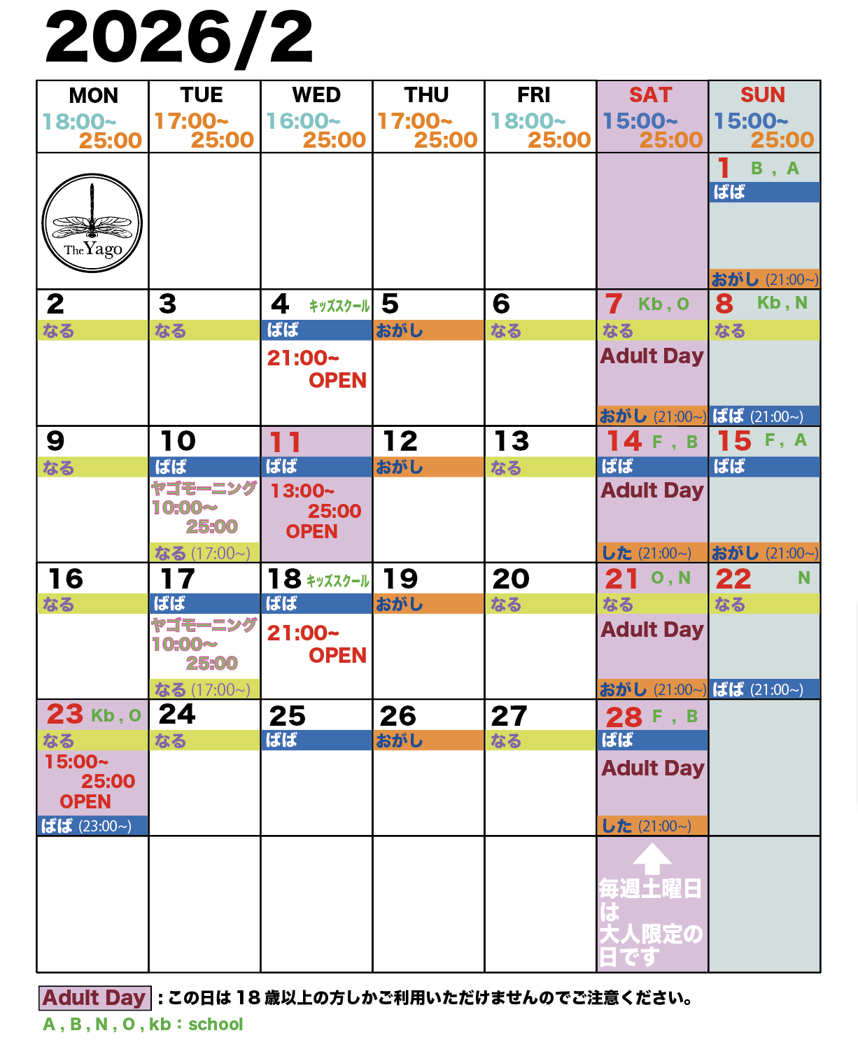 水曜日スクールがある日は21:00〜オープンなのでご注意ください。